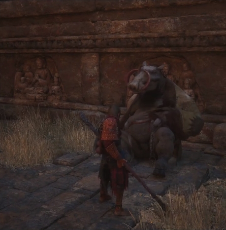 2、隨后就可以在這里發(fā)現(xiàn)一個(gè)喝醉的黑豬,這就是交付給我們?nèi)蝿?wù)的NPC,需要我們幫助他找到解酒石;