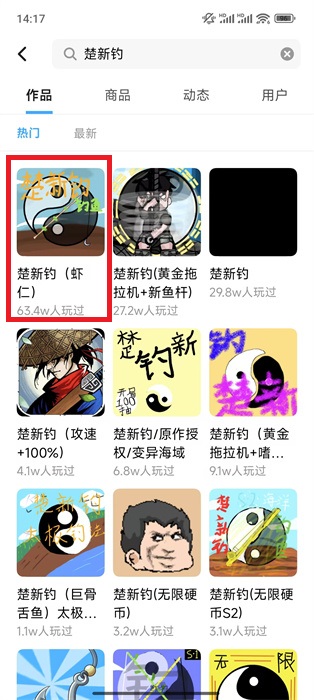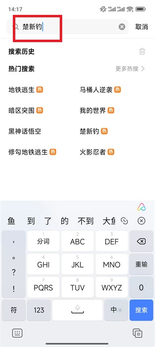 2、在搜索界面,輸入【楚新釣】就可以搜索該游戲;