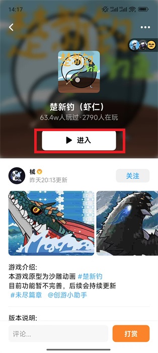 4、然后在游戲詳情界面,點(diǎn)擊其中的【進(jìn)入】就可以開啟游戲嘗試玩法。