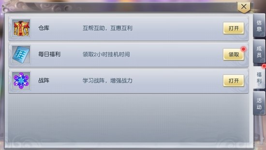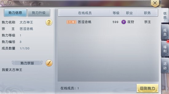 1、加入勢力能夠獲得勢力的各種福利,還可參與豐富多彩的勢力活動。