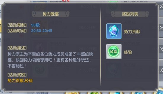 ①活動期間回到勢力領(lǐng)地晚宴區(qū)即可獲得經(jīng)驗(yàn),活動期間只要處于晚宴區(qū)內(nèi)每10s均可獲得經(jīng)驗(yàn)。