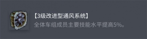 作用:提升所有車組成員5%的主要技能,間接加強(qiáng)火控、視野、機(jī)動(dòng)等所有屬性。