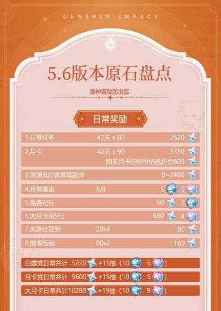 原神新版本原石統(tǒng)計(jì)
