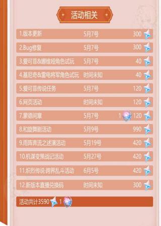 2、新版本更新,5月的星辰商店不參與本次統(tǒng)計(jì),6月的星辰商店參與本次統(tǒng)計(jì),后續(xù)版本直播的300原石兌換碼放出時(shí)還在新版本,因此也計(jì)算到統(tǒng)計(jì)中。