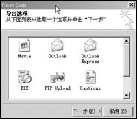 5. 將捕捉到的影像導(dǎo)出為連貫的SWF文件:依次單擊“文件→導(dǎo)出”選項(xiàng),彈出如圖2所示的對(duì)話框。選擇“Movie”選項(xiàng),單擊〔下一步〕,給定SWF文件存放的路徑和文件名,單擊“保存”。
