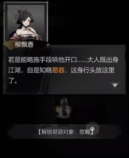 2、易容后可以在不經(jīng)歷戰(zhàn)斗場景的情況下,直接和一些關(guān)鍵人物對話獲取線索,像探訪花鶯樓時(shí)易容成歌姬模樣,就能輕松獲得線索。