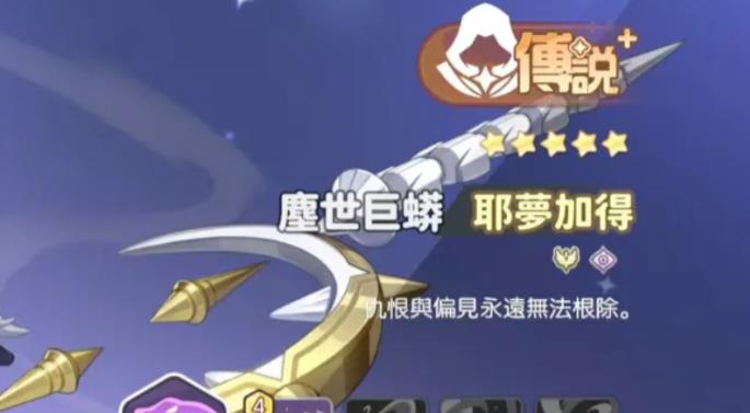 4、塵世巨蟒·耶夢加得是刺客,單體爆發(fā)極致,對殘血目標傷害更高,奧義附帶擊飛和范圍濺射,破防增傷效果好,與圣堂隊機制契合,但要注意站位,避免被先手秒掉。