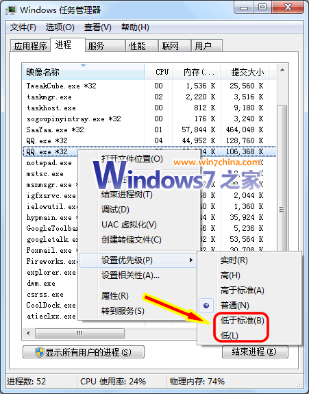 第二招:發(fā)配邊疆,降低QQ進程優(yōu)先級