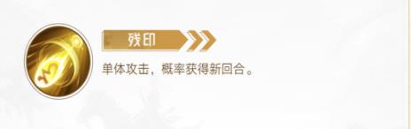 1、殘印作為單體攻擊手段,釋放后有概率獲取全新回合,這讓其能在戰(zhàn)斗中靈活出擊,抓住時(shí)機(jī)給予敵人致命一擊,打亂敵方戰(zhàn)斗節(jié)奏。