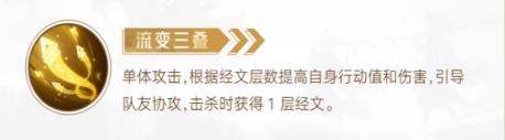 2、流變?nèi)B同樣是單體攻擊技能,會根據(jù)經(jīng)文層數(shù)提升自身行動值與傷害,還能引導(dǎo)隊(duì)友協(xié)同攻擊,成功擊殺目標(biāo)可獲得一層經(jīng)文增強(qiáng)實(shí)力。