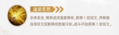 3、諸法無我屬于全體攻擊技能,不僅有概率降低敵人速度,釋放后獲得一層經(jīng)文,且能依據(jù)經(jīng)文層數(shù)減少技能冷卻時(shí)間,實(shí)現(xiàn)頻繁輸出。