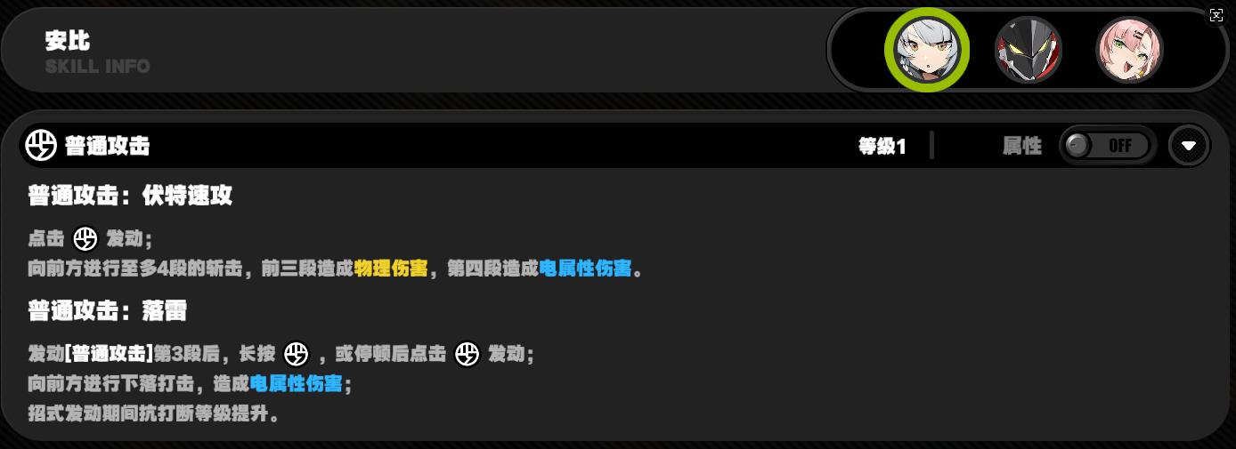 波動(dòng)電壓:安比在普通攻擊第三段后發(fā)動(dòng)普通攻擊-落雷、特殊技或強(qiáng)化特殊技時(shí),招式造成的失衡值提升32%。