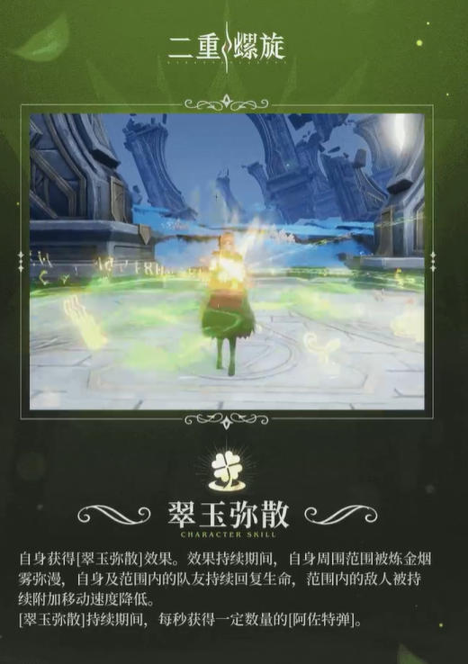 1、核心技能翠玉彌散在戰(zhàn)斗中生成范圍治療的煉金煙霧場(chǎng)持續(xù)回復(fù)自身及附近隊(duì)友生命減緩敵人移動(dòng)速度同時(shí)每秒自動(dòng)積累阿佐特彈保證遠(yuǎn)程輸出的連續(xù)性和穩(wěn)定性。