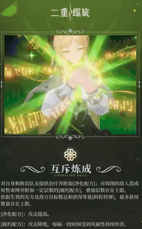 2、主動(dòng)技能互斥煉成治療隊(duì)友時(shí)附加提升攻擊的凈化配方還能短暫束縛敵人施加降低攻擊和持續(xù)風(fēng)屬性傷害的腐朽配方并根據(jù)影響單位數(shù)量獲額外阿佐特彈維持彈藥儲(chǔ)備。
