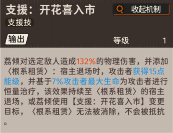 4、支援技能開花喜入市結(jié)合兩種技能效果為隊友提供增益,不過解鎖高級認證后效果不轉(zhuǎn)移,作為輔助技能加到4或5級便能有效發(fā)揮其團隊輔助作用。