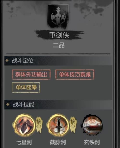 5、重劍俠擅長群體外功輸出核心技能有七星劍截脈劍玄鐵劍具備單體技巧衰減和單體眩暈效果可通過疊加buff削減對方實力兩個轉(zhuǎn)職方向在打boss時均有出色表現(xiàn)。