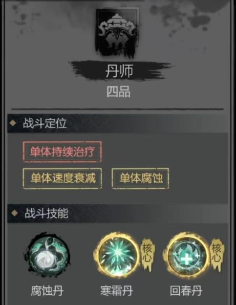 1、丹師需兩次轉職獲取,從方士一轉成陰陽師,再二次轉職可得,其戰(zhàn)斗定位是單體持續(xù)治療,附帶多種負面效果,能應對特定戰(zhàn)斗場景。