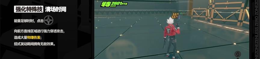 清場(chǎng)時(shí)間:當(dāng)能量充足時(shí),點(diǎn)擊觸發(fā)此技能。角色將向前方的一個(gè)直線區(qū)域發(fā)動(dòng)穿刺攻擊,造成大量的物理傷害。在技能發(fā)動(dòng)期間,角色將變得無敵。