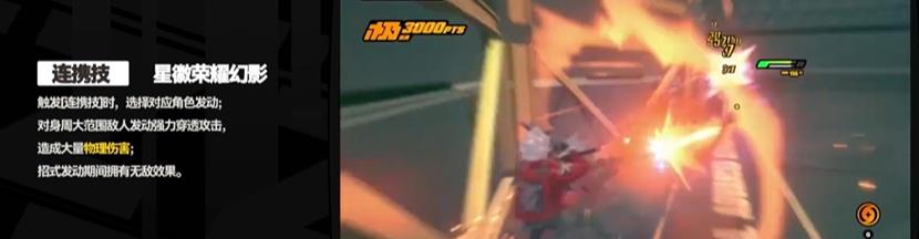 星徽榮耀幻影:在連攜攻擊觸發(fā)時(shí),點(diǎn)擊角色頭像即可發(fā)動(dòng)該技能。此技能能夠?qū)χ車臄橙诉M(jìn)行強(qiáng)力的穿刺攻擊,造成大量的物理傷害。在技能發(fā)動(dòng)期間,角色具有無敵效果。