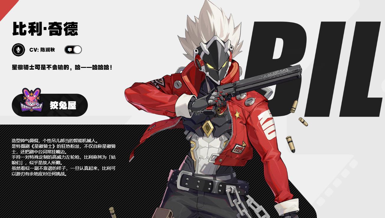絕區(qū)零中比利奇德造型帥氣倜儻,頭戴面具手持一對(duì)特殊定制的高威力左輪槍姑娘們,穿著一身紅色的夾克個(gè)性吊兒郎當(dāng),是特?cái)z劇星徽騎士的狂熱粉絲,不僅自稱星徽騎士還把劇中臺(tái)詞常掛嘴邊,來自海軍陸戰(zhàn)隊(duì)是一名出色的戰(zhàn)士和策略家,后加入狡兔屋能夠游刃有余地應(yīng)對(duì)各種挑戰(zhàn)。
