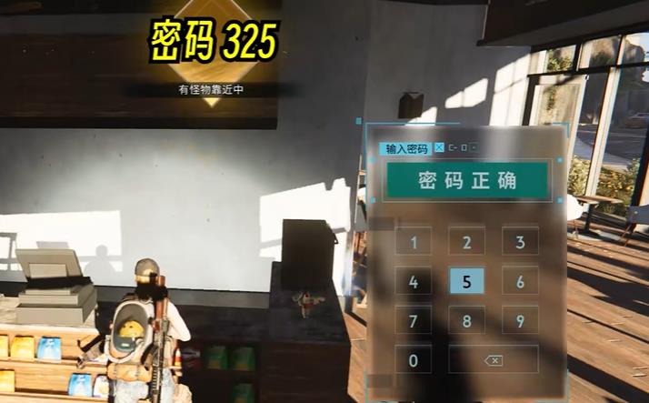 2、密碼破解需收集三條線索,分別在高地中心建筑大廳主街北側(cè)LK建筑北側(cè)游戲世界建筑獲取便條,得到數(shù)字235,按第三個(gè)數(shù)字最大中間數(shù)字最小規(guī)則組合成密碼325。