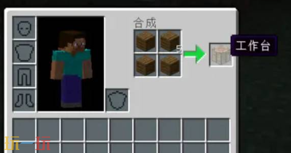 1、首先砍樹獲取木材合成工作臺,這是后續(xù)制作的基礎(chǔ)工具,接著用八個木板在工作臺合成箱子,為合成潛影箱做好前期準備工作。