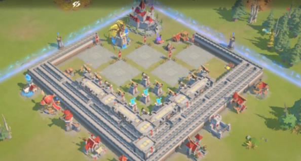 3、主堡前方左右兩側(cè)部署足夠肉盾兵種防止敵人突破主堡后方左側(cè)設(shè)置龍巢右側(cè)布置部分城墻其他兵力戰(zhàn)火遠(yuǎn)離主堡根據(jù)敵軍進(jìn)攻分散或集中的情況靈活分布箭塔將龍石結(jié)界放置在防御薄弱處。