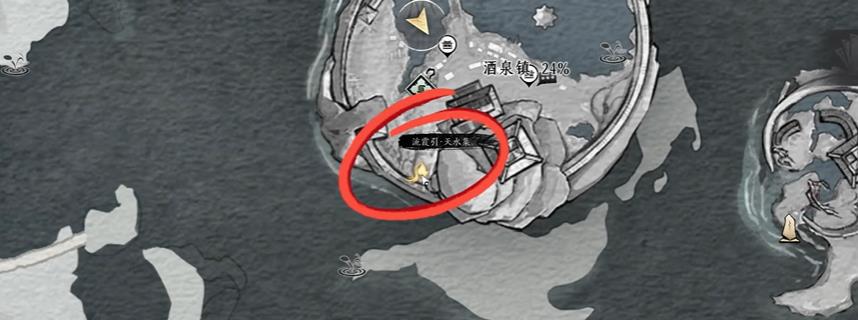 2、傳送至天水集后需尋找關(guān)鍵機關(guān)流霞引,從天水集出發(fā)朝著地圖底部方向移動,在靠近塔底的位置就能發(fā)現(xiàn)這個用于觸發(fā)傳送的重要裝置。