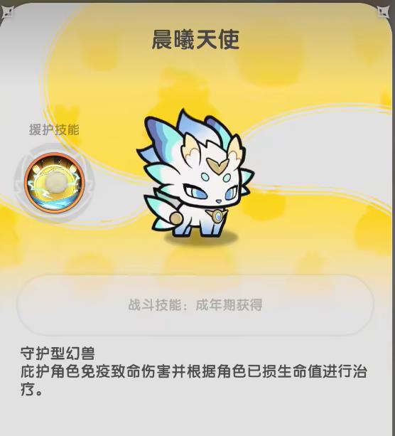 2、晨曦天使是守護型寵物戰(zhàn)斗開始時為角色添加天使守護三回合能保命回血并增精準會心率契合有一定輸出且身板較肉的騎士斗士。