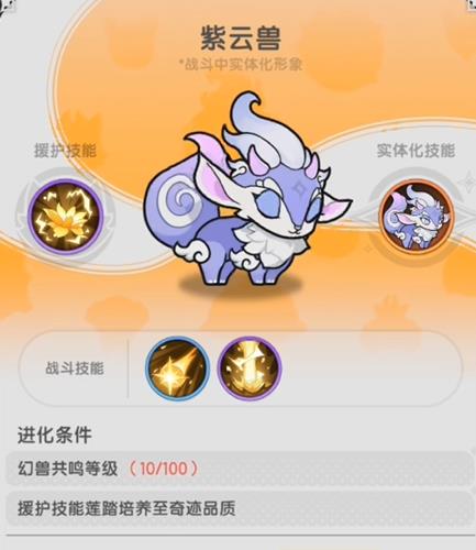 3、紫云獸為輸出類寵物角色釋放傷害戰(zhàn)技時它對目標及1格范圍內(nèi)敵人造成光元素傷害并浮空敵人對大體型目標傷害提升適用于術(shù)士附傷流派。