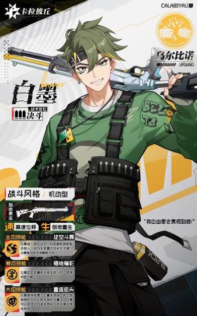 3、白墨是近距離壓制高手霰彈槍爆發(fā)高。主動(dòng)技能弦化突進(jìn)填彈,被動(dòng)技能限制敵人弦化終極技能可復(fù)活回血,戰(zhàn)術(shù)技能造成傷害并限制敵人移動(dòng)適合正面激烈對(duì)抗。