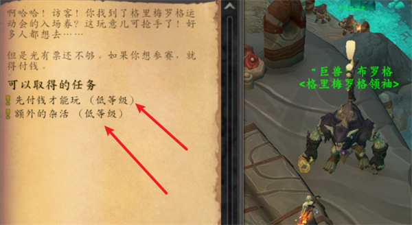 1、前往查拉雷克洞窟坐標(biāo)約43,86處找到NPC巨獸布羅格,與其對話接取先付錢才能玩和額外的雜活這兩個(gè)提升名望的關(guān)鍵任務(wù)。