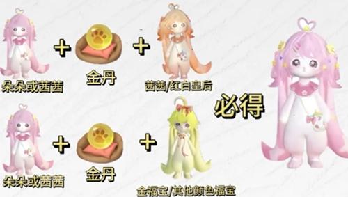 4、朵朵或茜茜繁育時用朵朵或茜茜搭配金丹再與茜茜紅白皇后或其他顏色福寶組合都能繁育出朵朵或茜茜。