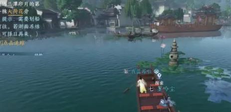 3、拿到船票后前往湖邊登上船只駕駛船只緩緩向三潭印月方向行駛最終到達(dá)區(qū)域內(nèi)第一株大荷花旁即可完成任務(wù)但需注意若湖面出現(xiàn)凍結(jié)情況需另擇日期再來。