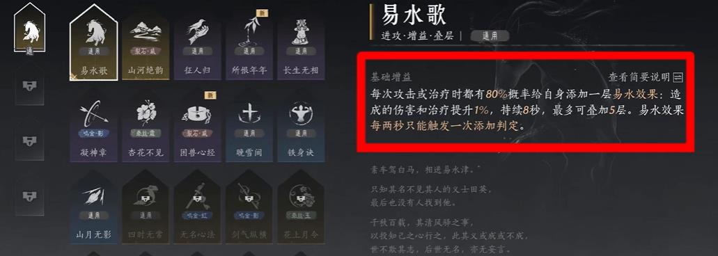 燕云十六聲里易水歌心法是備受關注的強力技能每次攻擊或治療時有80%概率為自身添加易水效果顯著提升戰(zhàn)斗優(yōu)勢。不少玩家迫切想知道如何獲取這一心法。接下來將詳細介紹具體獲取途徑從起始位置到關鍵角色再到物品購買與合成步驟清晰易懂助你快速掌握獲取方法輕松將易水歌心法納入囊中提升實力在游戲世界中應對各種挑戰(zhàn)。