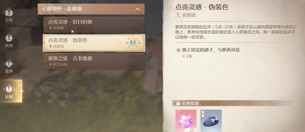 1、任務觸發(fā)后需把握時間節(jié)點在晴朗天氣的白天5點至21點期間前往后山通向愿望夢境倉庫的小路尋找在此徘徊思考的蘿西這是開啟任務的關鍵前提。