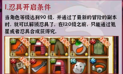 1、角色等級(jí)達(dá)到90級(jí)并通過(guò)最新冒險(xiǎn)副本即可解鎖忍具系統(tǒng)120級(jí)之前究忍具只能通過(guò)氪金或合成獲得這是接觸高級(jí)忍具的關(guān)鍵節(jié)點(diǎn)需達(dá)到相應(yīng)等級(jí)和副本要求才能開(kāi)啟系統(tǒng)。