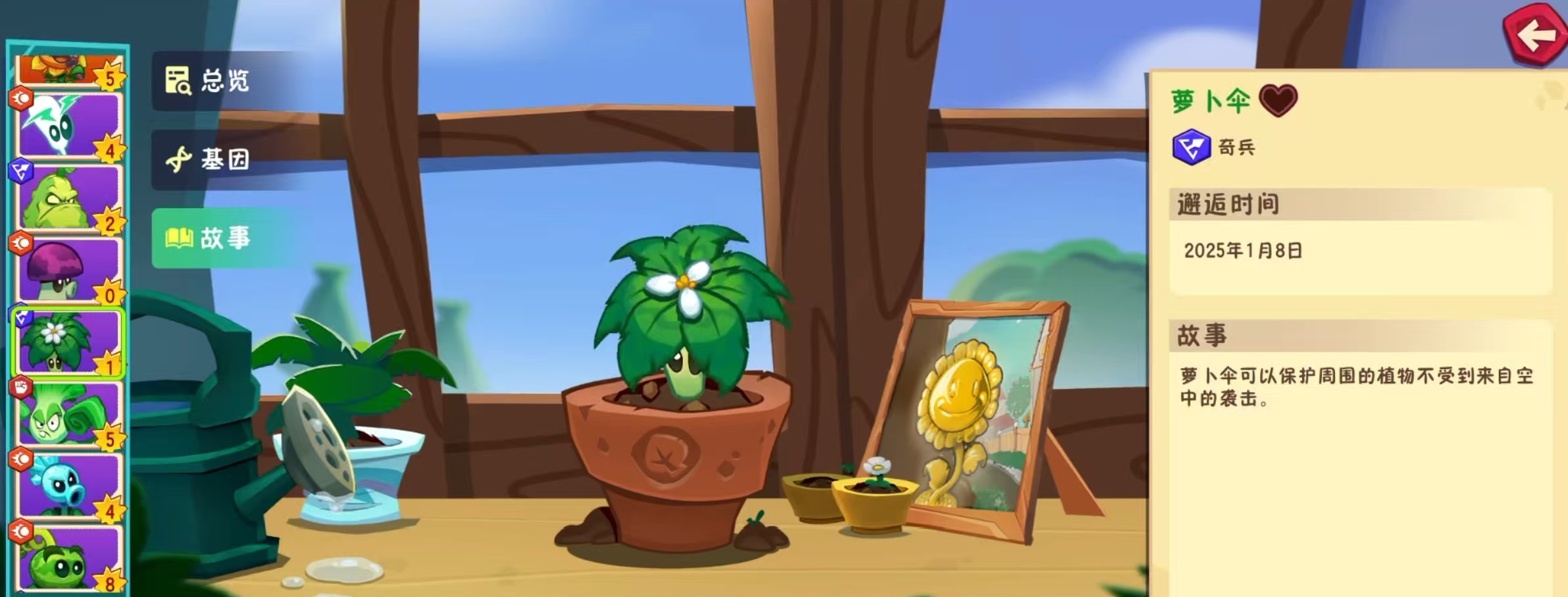 植物大戰(zhàn)僵尸3里蘿卜傘是兼具趣味與實用價值的植物。它曾因膽小怯懦而迷茫,直到肩負起守護使命才綻放光彩。玩家通關(guān)城區(qū)第6關(guān)即可解鎖該植物,種植僅需消耗1點陽光,雖種植冷卻時間較長且生命值較低,卻能在對抗空中威脅時發(fā)揮關(guān)鍵作用。游戲中空中襲擊常讓防線陷入危機,而蘿卜傘如同撐起的防護屏障,能為周圍植物抵御來自上方的攻擊。想知道它如何化解具體威脅又有哪些戰(zhàn)術(shù)技巧,接下來將全面解析蘿卜傘的特性與用法。
