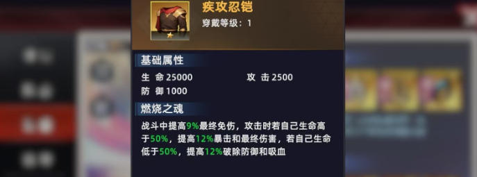 2、裝備有兩種選擇帝王甲胄套裝可提升怒氣技和必殺技效果根據(jù)目標負面效果數(shù)量增傷疾攻忍鎧套裝按生命百分比提升輸出增強前期能力受怒氣攻擊時還能額外提升屬性。