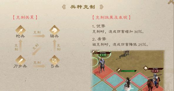 1、四大兵種形成循環(huán)克制體系,步兵可壓制弓兵但被騎兵克制,弓兵對槍兵有克制效果,騎兵能克制步兵卻會被槍兵克制,無絕對強勢兵種需靈活調(diào)配。