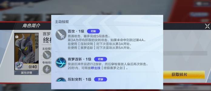 2、主動(dòng)技能賽羅連斬可快速向前沖刺兩連擊并穿梭至敵人身后再次斬?fù)粼摷寄苁褂煤?0秒內(nèi)可釋放呼出技終極賽羅之劍。