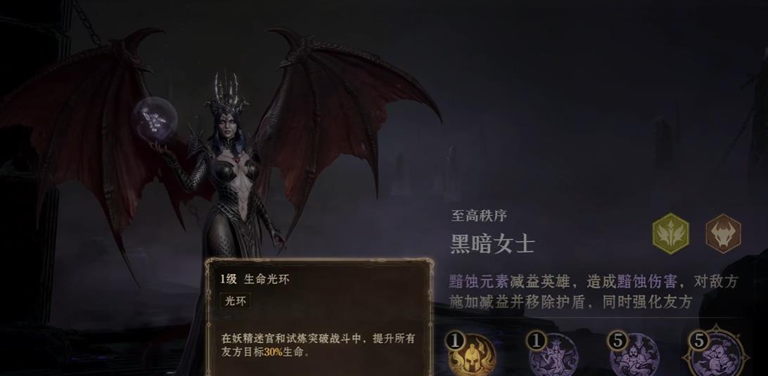 龍息神寂全新英雄至高秩序黑暗女士即將正式與玩家朋友們見(jiàn)面,其立繪展現(xiàn)黑暗強(qiáng)大的女王形象技能玩法備受關(guān)注。她的技能以輔助控場(chǎng)為主既能提升友方生存能力又能瓦解敵方戰(zhàn)斗力在妖精迷宮試煉突破等場(chǎng)景中可發(fā)揮關(guān)鍵作用。想知道她如何通過(guò)不同技能為團(tuán)隊(duì)創(chuàng)造優(yōu)勢(shì)嗎,接下來(lái)將從隊(duì)長(zhǎng)技被動(dòng)戰(zhàn)技威能技等方面詳細(xì)解析其玩法奧秘助你快速掌握這位新英雄的核心機(jī)制。