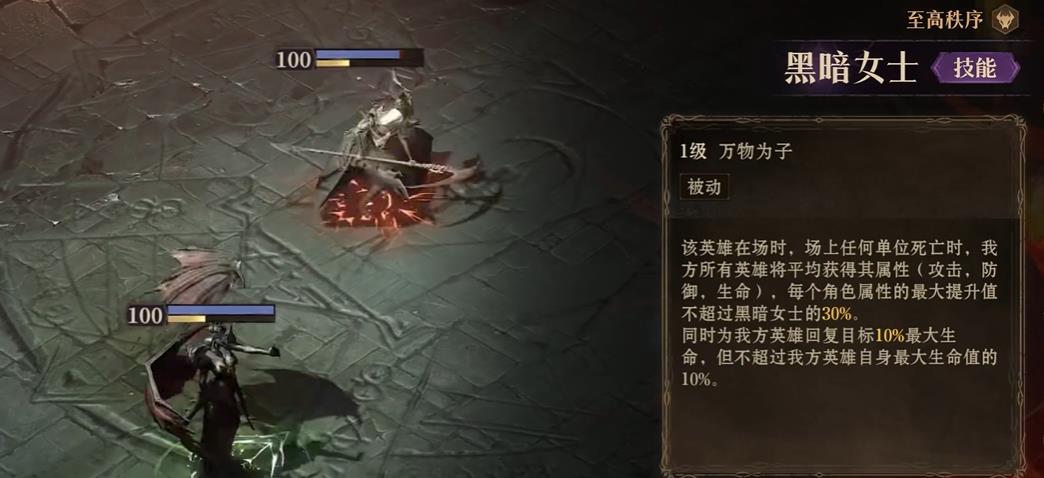 2、被動(dòng)萬(wàn)物之子觸發(fā)后場(chǎng)上任意單位死亡時(shí)己方所有英雄可平均獲取其攻擊防御生命屬性且每個(gè)角色屬性提升值不超過(guò)該英雄的30%同時(shí)回復(fù)目標(biāo)10%最大生命增強(qiáng)團(tuán)隊(duì)續(xù)航與實(shí)力。