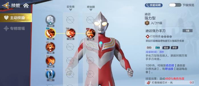 2、重?fù)艏寄艿襄葟?qiáng)力手刀為跳起對前方使用雙手手刀攻擊,釋放后10秒內(nèi)可觸發(fā)追擊技能迪迦霍爾德光波遠(yuǎn)程打擊,也能呼出迪迦電擊拳沖刺震飛目標(biāo)并強(qiáng)化普攻傷害形成連招鏈。
