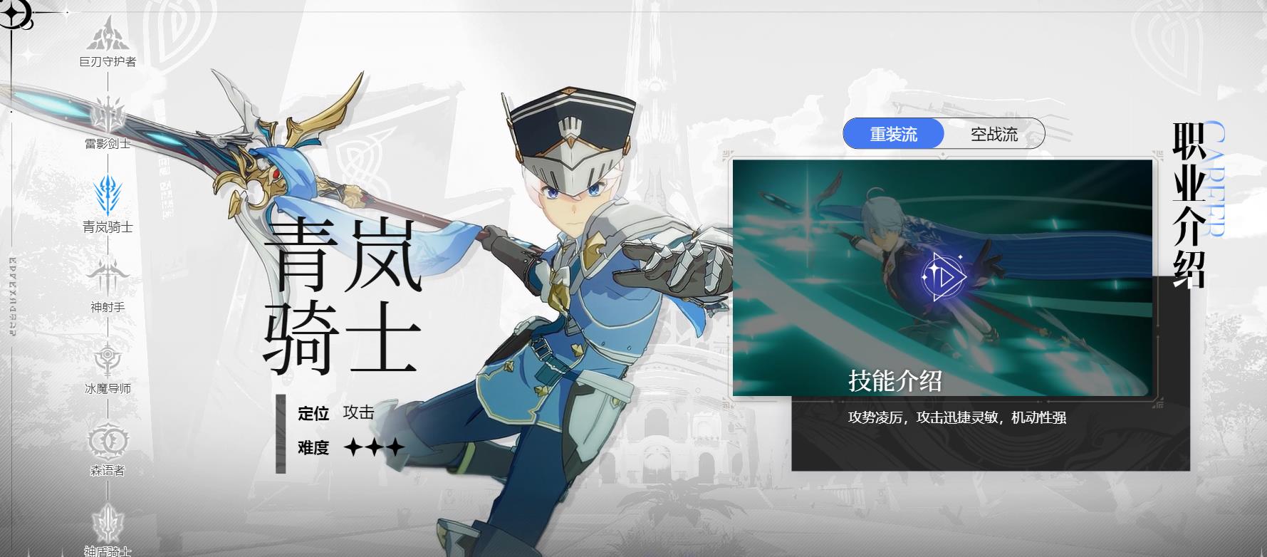 2、青嵐騎士是半坦半輸出的近戰(zhàn)職業(yè),有地面流和空戰(zhàn)流,可在地面或空中連招換血,適合喜歡無(wú)腦近戰(zhàn)輸出的玩家。