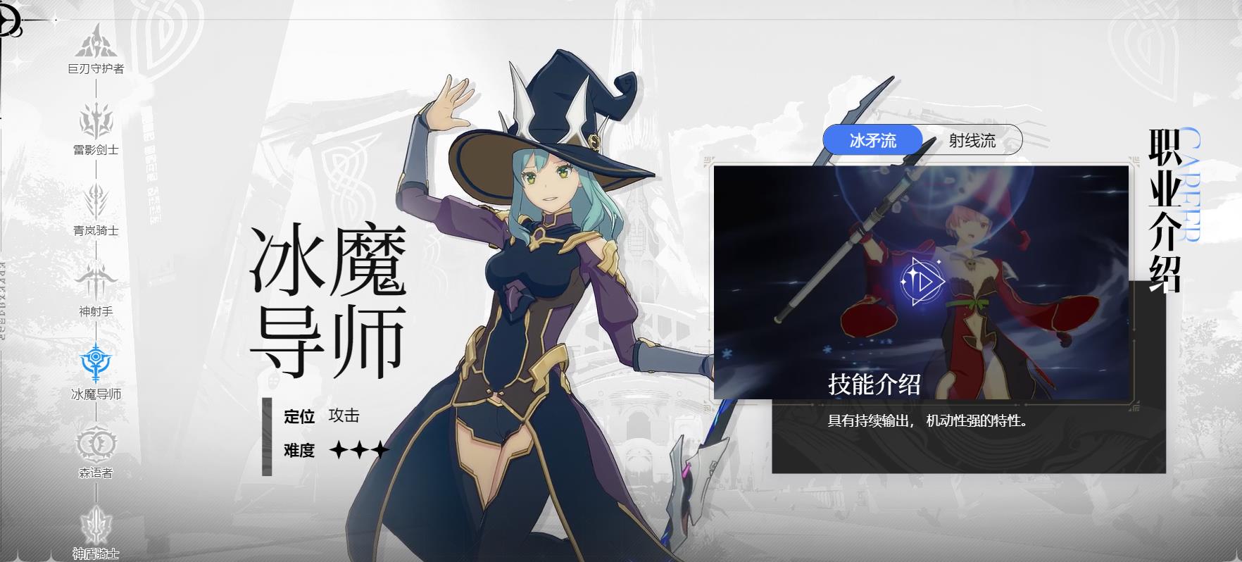 4、魔導(dǎo)師是法術(shù)職業(yè),有射線流和冰矛流,前者釋放冰射線持續(xù)輸出并減防,后者召喚冰矛領(lǐng)域打爆發(fā),適合喜歡遠(yuǎn)程AOE輸出的玩家。