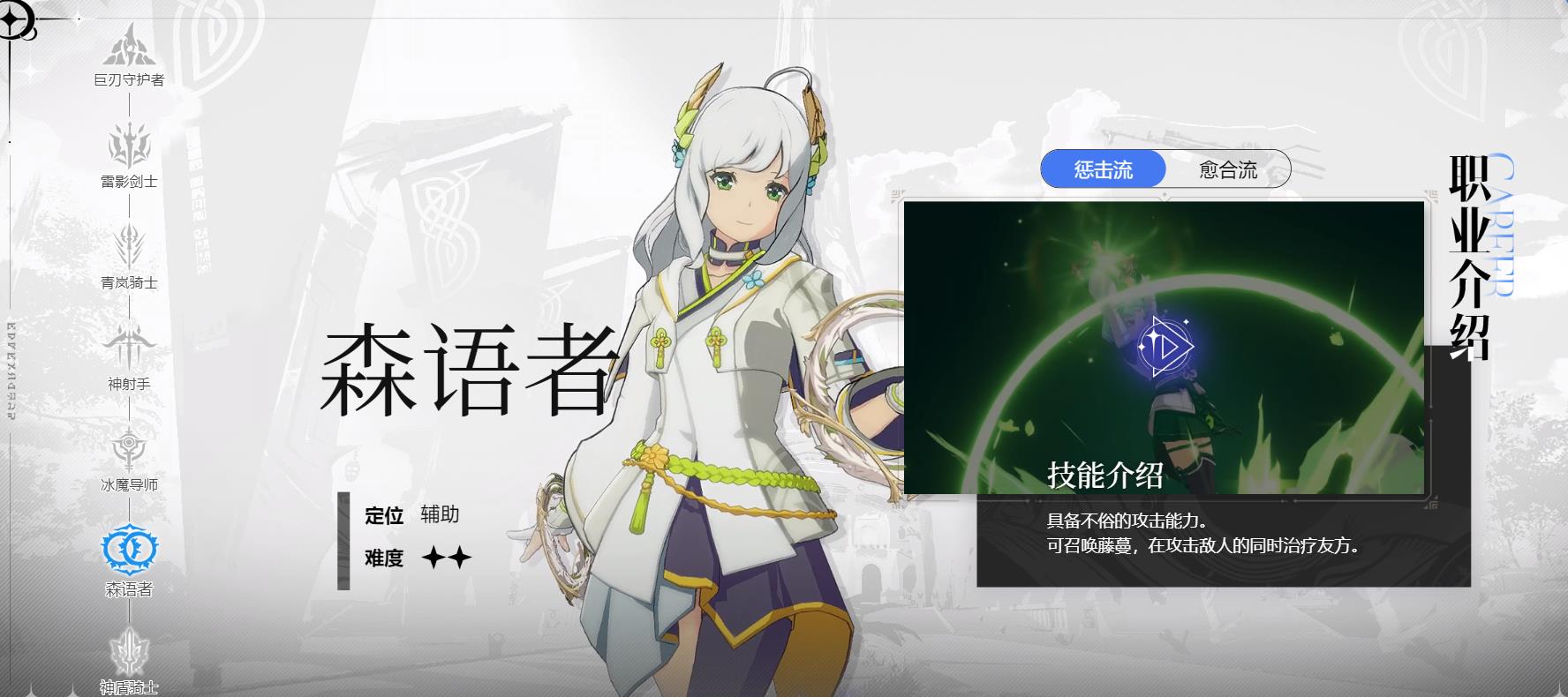 6、森語(yǔ)者是游戲中唯一的團(tuán)輔職業(yè),有純輔助流和半輔助半輸出流,推薦玩純輔助流,適合喜歡輔助隊(duì)友的玩家。