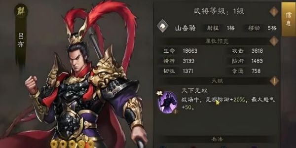 新三國志曹操傳即將在近日全面上線其正版授權(quán)的三國策略玩法,玩家熟悉的各路英雄都會登場其中,呂布作為群雄陣營中的無雙英雄備受關注,其不僅在卡池中的抽取概率較低,還可通過演武商店兌換獲取,且憑借特殊技能與合理陣容搭配能發(fā)揮強勁戰(zhàn)力,想知曉這位傳奇武將在游戲中的具體表現(xiàn),接下來的內(nèi)容將為你詳細解析。