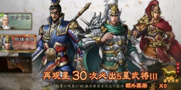 1、點將臺持續(xù)60天,以3天為一循環(huán),2天普通5星武將加1天稀有5星武將,第30和60天稀有位換為貂蟬,60天共得40普通5星18稀有2貂蟬。