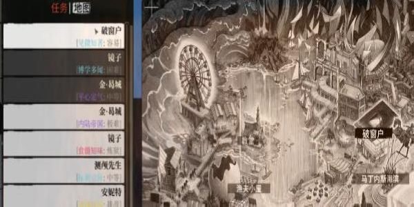 2、新地圖無法展示完整地貌且不能放大縮小,需通過與舊地圖對比來確定新地點(diǎn)位置,但其具備快速旅行功能,可傳送至教堂、港口及漁夫小屋這三個(gè)任務(wù)高頻區(qū)域。